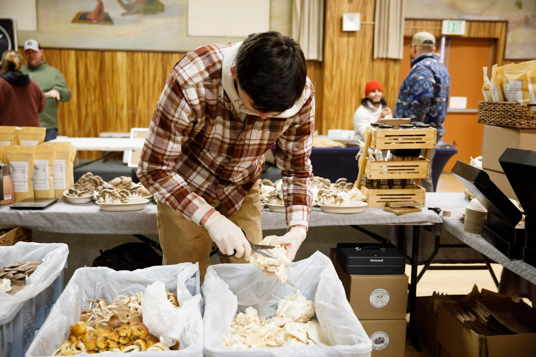 What can you expect? Lots of seasonal local produce and herbs. Fresh produce grown and harvested by local farmers year-round. A variety of locally raised meats including beef, pork, lamb, rabbit, goat, chicken and turkey plus eggs. Seafood and fish from our local fish farmers and our fisherfolk who live locally and fish in Alaska. Cheese made from fresh local cow, sheep and goat milk. Specialty foods such as breads, pastries, salsa, kombucha, hummus, cookies, soups, pasta, jams, and so much more. Handmade items for home, kitchen and garden. Coffee and delicious food that can be eaten onsite.